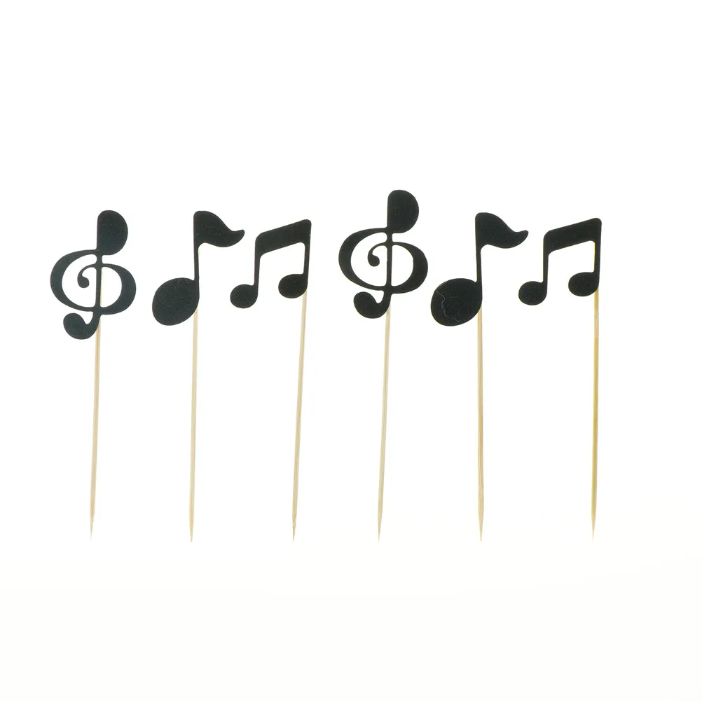 Best Chance of 6pcs Baking Birthday Tea Party Wedding Decoration Baby Shower Cake Toppers Glitter Music Note Paper Banner For Cupcake Wrapper