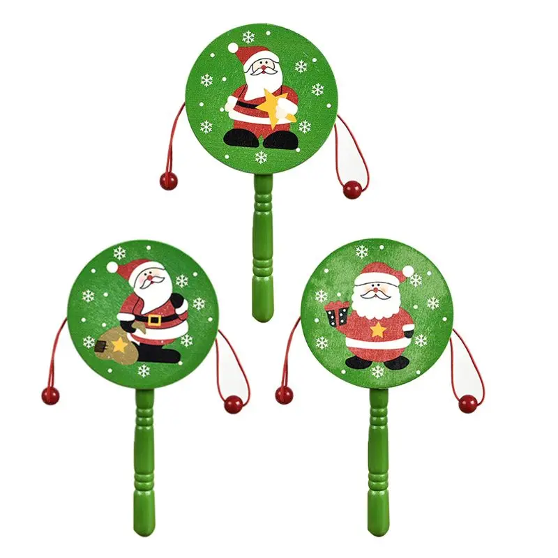 Christmas Baby Kids Wood Rattle Drum Instrument Toys Children Musical Toy Chines