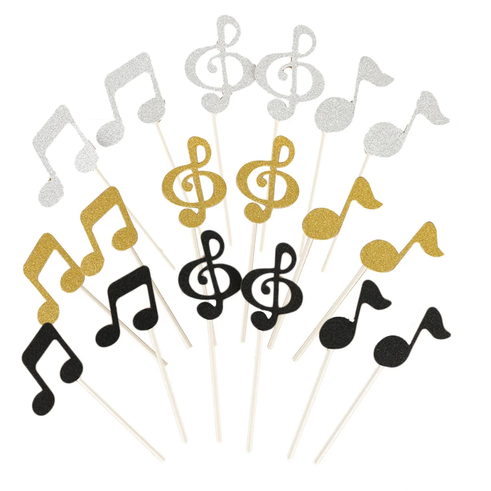 18PCS Glittery Notation Birthday Cake Toppers Set Musical Notation Party Decoration for Baby Shower Wedding Birthday Party