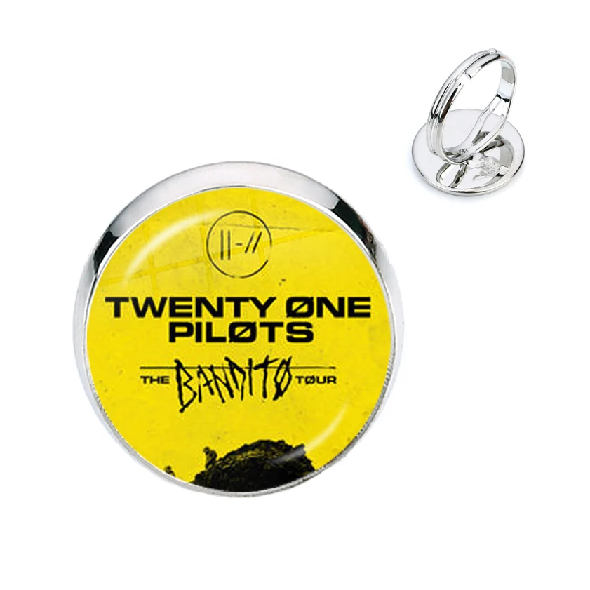 Hot Music Band Twenty One Pilots Glass Cabochon Rings Souvenir Trendy Rock Hiphop Collar Pins Kids Women Jewelry Fans Gift